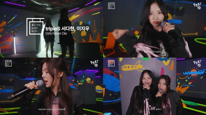 스토어 링크 라이브는 아티스트 맞춤형 상점에서 진행되는 라이브 콘텐츠다. 공개된 영상에는 이지우와 서다현이 스타일리시한 패션을 연출한 채 ‘걸스 네버 다이(Girls Never Die)’를 부르는 모습이 담겼다.
