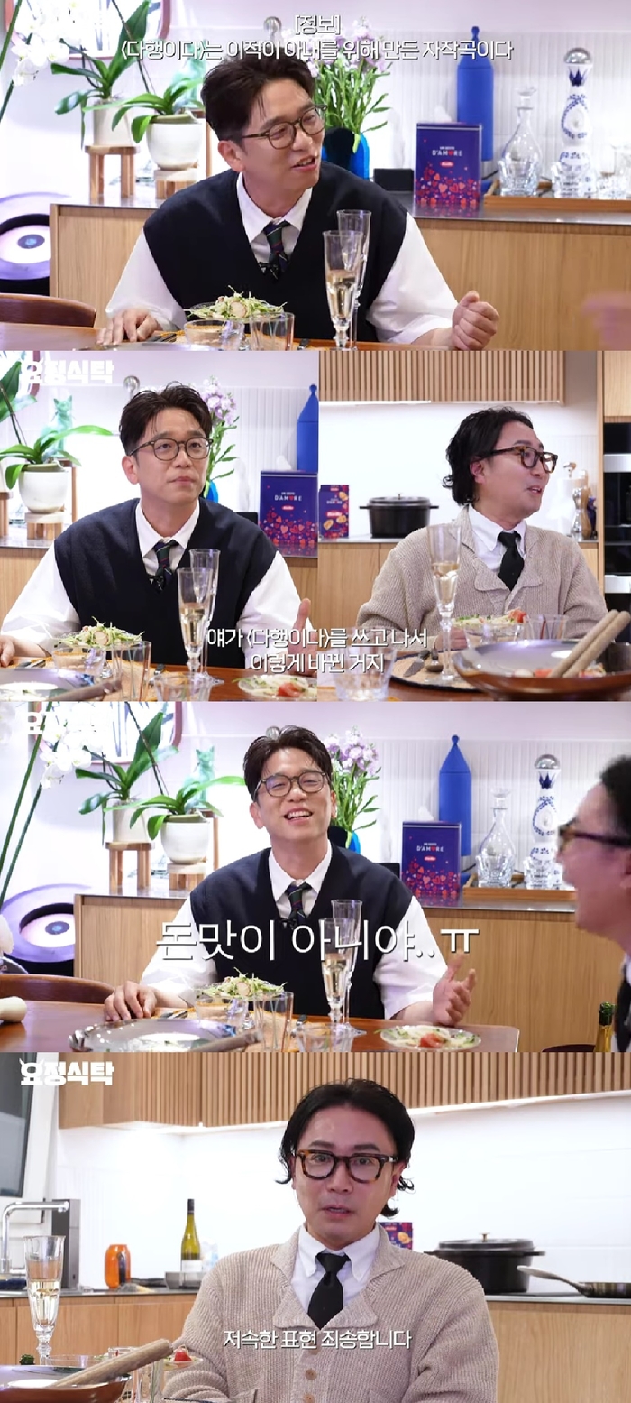 쌍방 폭로전이 나온 가운데 정재형은 “내가 최고의 음반으로 치는 게 패닉 2집 ‘밑’이 정말 시대에 대한 냉소적이고 그런 느낌들이 있었다. 얘가 돈맛을 보면서 ‘다행이다’ 이런 거 쓰면서 이렇게 바뀐 거다”라고 해 폭소가 터져 나왔다.
