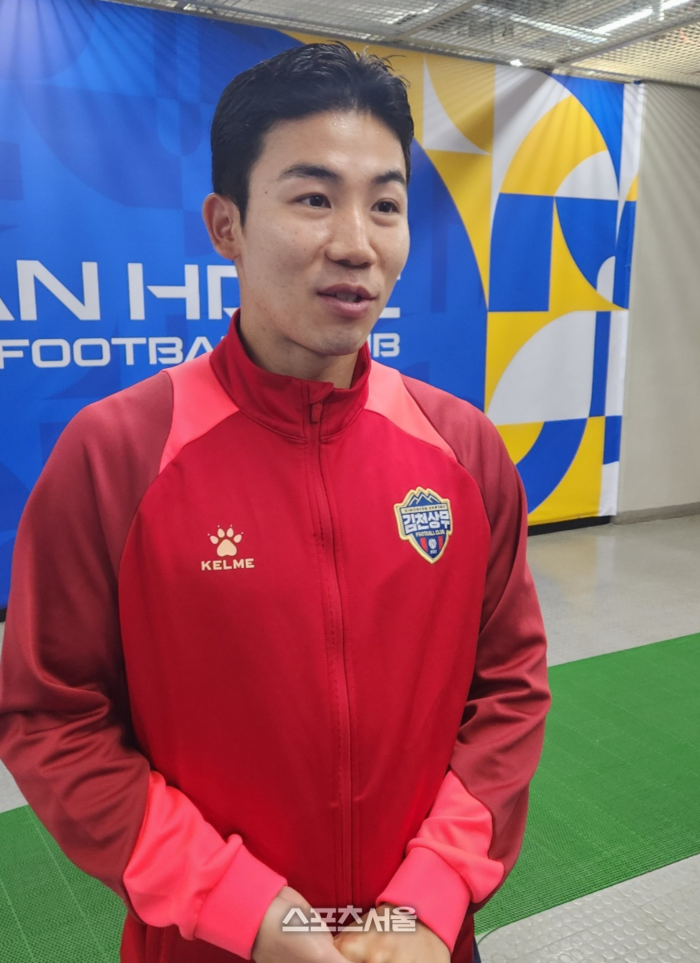 ‘불사조 군단’ 김천 상무에 귀중한 승점 1을 안긴 ‘히어로’. K리그1 ‘디펜딩 챔프’ 울산HD 골문을 저격한 뒤 자기소개부터 했다. 그만큼 국내 최상위리그를 누비면서도 자기를 알지 못하는 사람이 많다는 생각에서다.