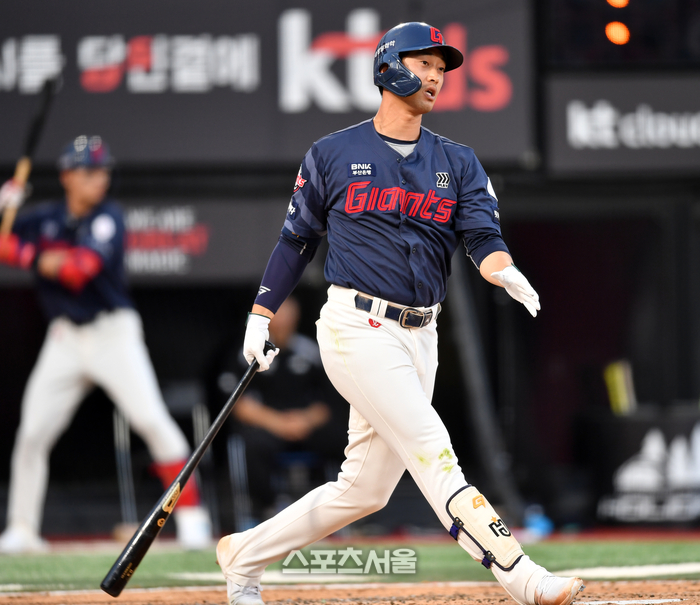 롯데 9번타자 이학주가 14일 수원KT이즈파크에서 열리는 2024 프로야구 KT위즈와 롯데자이언츠 경기 3회초 삼진으로 물러나고 있다. 2024.05.14.