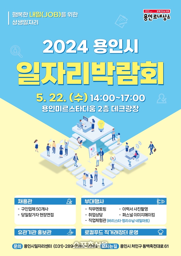 〔스포츠서울│용인=좌승훈기자〕경기 용인시는 오는 22일 처인구 삼가동 용인미르스타디움 2층 데크 광장에서 올해 첫 일자리박람회를 연다고 16일 밝혔다.