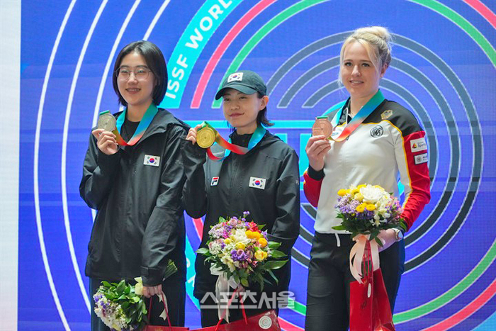 [스포츠서울 l 임실=고봉석 기자] 전북 임실군청 사격팀 김예지 선수가 2024 ISSF 바쿠 월드컵에서 10m 공기권총 은메달과 25m 권총 금메달을 차지했다.