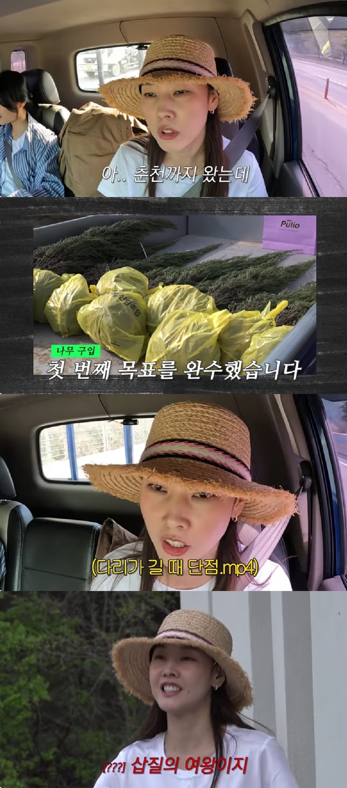 각종 조경수를 둘러보던 한혜진은 한참을 고민 끝에 측백나무의 일종인 블루애로우 10주를 사서 돌아왔다. 집으로 돌아와 묘목심기를 시작한 한혜진은 생각보다 단단한 땅에 삽질을 하느라 땀을 쏟았다.