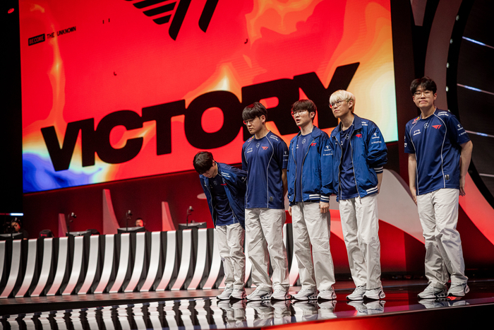 T1은 17일 중국 쓰촨성 청두 파이낸셜 시티 공연 예술 센터에서 열린 2024 미드 시즌 인비테이셔널(MSI) 브래킷 스테이지 패자조 3라운드 G2 e스포츠와 대결에서 1·2세트를 연이어 승리하며 세트스코어 2-0이 됐다. 이로써 T1은 결승을 향한 마지막 관문인 빌리빌리 게이밍(BLG)과 리턴 매치까지 단 한 세트만을 남겨뒀다.