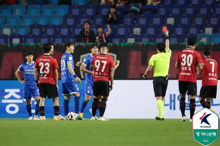 전반을 득점 없이 마친 두 팀은 후반에 본격적으로 맞붙었다. 다만 변수가 이르게 발생했다. 후반 5분 부천의 역습이 펼쳐졌다. 루페타를 막던 백동규의 태클이 문제였다. 주심은 처음 경고 카드를 꺼냈지만, 비디오 판독(VAR) 이후 퇴장으로 바뀌었다.