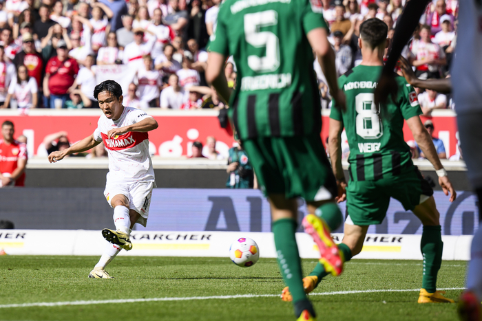 정우영은 19일(한국시간) 독일 슈투트가르트 메르세데스 벤츠 아레나에서 열린 2023~2024시즌 정규리그 34라운드 묀헨글라드바흐와 홈경기에서 티미 2-0으로 앞선 후반 12분 교체 투입됐다.