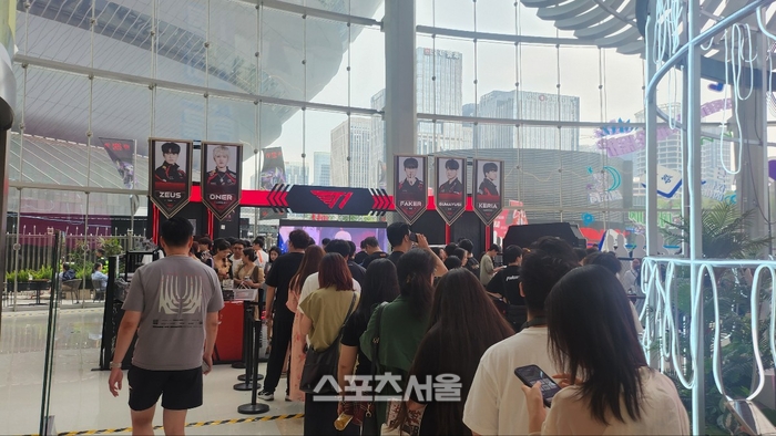 한 현지팬은 “T1 경기를 보러 상하이에서 왔다. ‘페이커’ 생일 기념 티셔츠를 사기 위해 기다리고 있다”며 “중국에 T1 팬이 많다. ‘페이커’와 ‘구마유시’ ‘케리아’ 모두 좋아한다. ‘구마유시’ 유니폼을 살 계획”이라고 설명했다.