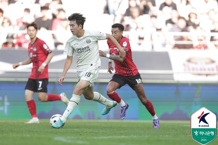 전반 34분에는 린가드의 발끝에서 결정적인 기회가 시작됐다. 아크서클 정면에서 공을 잡은 린가드가 오른쪽에서 침투하는 강성진을 향해 침착하게 땅볼 패스를 밀어줬다. 강성진의 슛은 빗맞았고, 공은 수비수를 거쳐 페널티박스 안의 이태석에게 향했다. 이태석은 강력한 슛을 시도했지만 이번에는 골키퍼 오승훈이 슈퍼세이브를 선보였다.