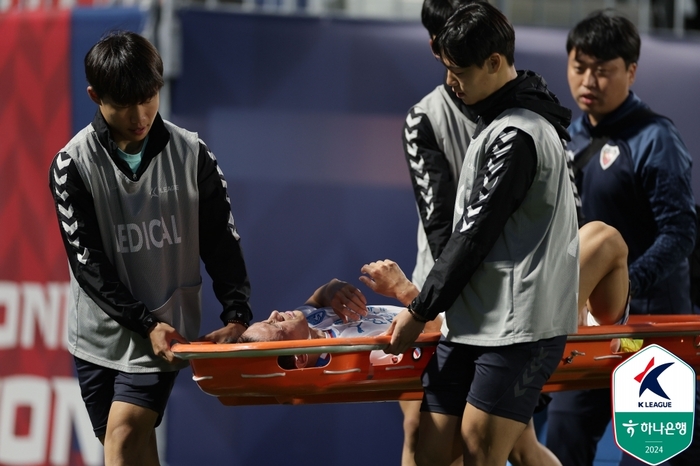 포항 미드필더 김종우는 지난 19일 수원종합운동장에서 열린 하나은행 K리그1 2024 13라운드 수원FC와 원정경기서 부상 이탈했다. 선발로 출전해 부지런히 그라운드를 누빈 그는 전반 추가시간 패스를 받아 볼을 컨트롤하며 페널티 박스 안으로 진입해 슛을 하려던 도중 종아리를 붙잡고 쓰러졌다. 어떤 누구와의 충돌 없이 홀로 쓰러진 것이다.