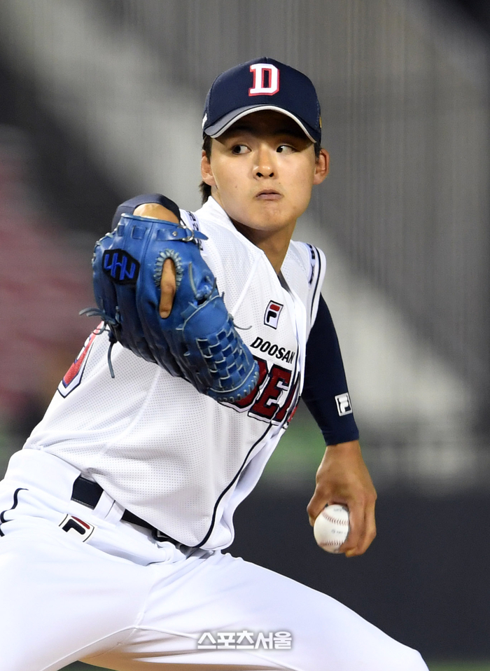 두산 베어스 이교훈이 21일 잠실구장에서 열린 2024 KBO리그 SSG 랜더스와 경기 6회초 등판해 힘차게 공을 던지고 있다. 2024. 5. 21.