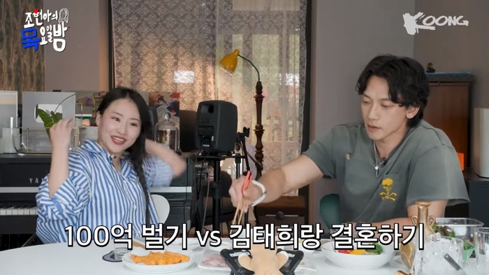 조현아는 “그런 말이 있다. 100억 벌기 대 김태희랑 결혼하기. 근데 (비) 오빠는 이걸 둘 다 했다”고 웃었다.