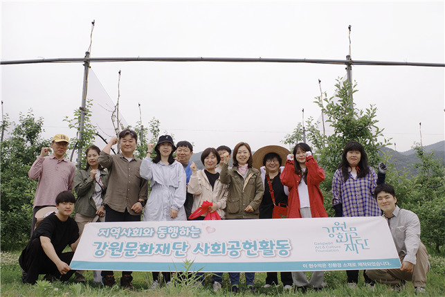 [스포츠서울ㅣ춘천=김기원기자] 강원문화재단(대표이사 신현상)은 5월 24일, ESG경영 실천 및 사회공헌활동의 하나로 춘천시 고은리 과수원을 찾아 노사 합동 농번기 농촌일손돕기 활동을 진행했다.