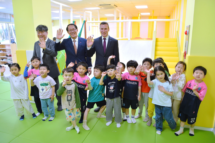 23일 진행한 금정체육공원 들락날락 개소식에는 마티아스 바이틀 메르세데스-벤츠 사회공헌위원회 의장을 비롯해 이준승 부산시 행정부시장, 최병한 부산MBC 사장, 김병기 아이들과미래재단 사업본부장 등이 참석했다.