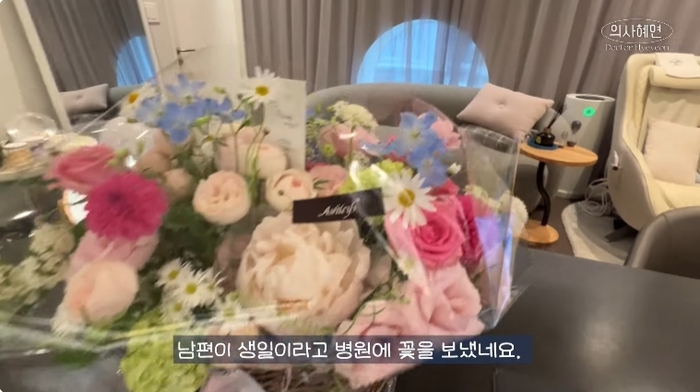 생일날에는 주진모의 꽃 선물도 있었다. 병원에서 꽃다발을 받은 민혜연은 “남편이 생일이라고 병원에 꽃을 보냈다. 제가 맨날 구박핟나. 왜냐하면 결혼하고 초기에 오빠 꽃 선물 같은 거 보낼 때 장례식장에 조화 보내거나 하는 그런 업체에서 계속 꽃을 보내는 거다. 센스가 좀 너무 심한데 했는데 예쁜 데서 잘 주문했다. 우리 남편 이제 결혼하고 몇 년 지나니까 센스를 찾아가고 있다”고 웃었다.