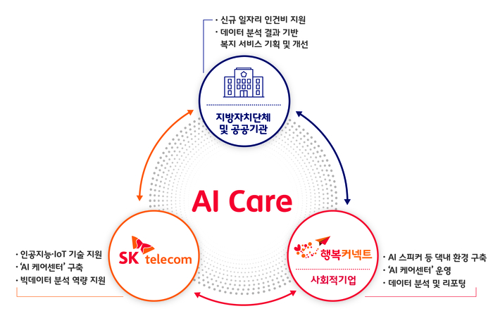 AI 스피커 기반 독거 어르신 통합 돌봄 서비스인 AI Care는 2019년4월부터 전국 110개 지자체 및 기관에서 약 2만 가구를를 대상으로 서비스를 제공 중이다. 소방청과 연계된 긴급 SOS 구조 서비스를 통해 지난달까지 총 906명 이상의 독거 어르신을 구조하는 성과를 거뒀다.