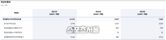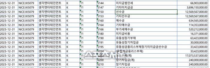‘스포츠서울’이 28일 딥서치를 통해 생각엔터테인먼트 재무제표(2023년 12월31일)를 확인한 결과 선수금이 약125억 6956만원에 달했다. 공연을 강행하지 않았으면 수익을 내지 못해 빚더미에 오를 판이었다.