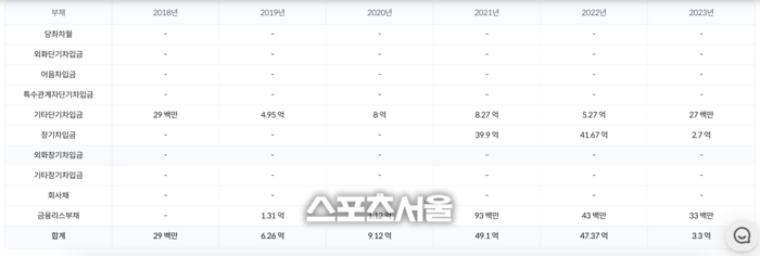 선수금은 갚아야 할 돈이기 때문에 부채에 해당하지만, 재무제표 상에는 부채로 잡히지 않는다. 공시에 따르면 생각엔터테인먼트 부채는 2021년 약49억원, 2022년 약47억원에 달했지만, 2023년엔 약3억원으로 줄어들었다. 실제 빚은 약128억원에 달했지만, 공시 상으로는 그렇지 않았다.