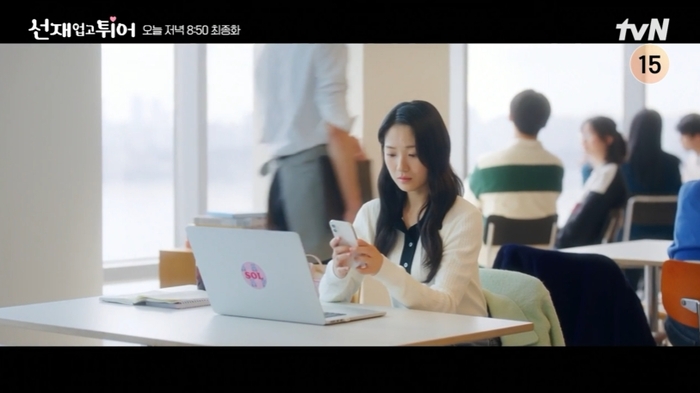 영상 속 카페에서 작업을 하고 있는 임솔(김혜윤 분)은 류선재(변우석 분)의 메시지를 확인했다. ‘언제쯤 끝나?’라는 메시지에 ‘모르겠어 오늘 안에 못 끝낼 것 같아’라고 답한 임솔.