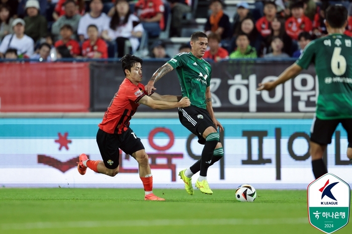 전북엔 한 방이 있었다. 전반 23분 김진수의 패스를 받은 이영재가 페널티박스 앞에서 강력한 왼발 중거리 슛으로 골문을 갈랐다. 강원은 전반 31분 김이석이 부상으로 쓰러졌다. 곧바로 김이석 대신 김강국이 투입됐다.