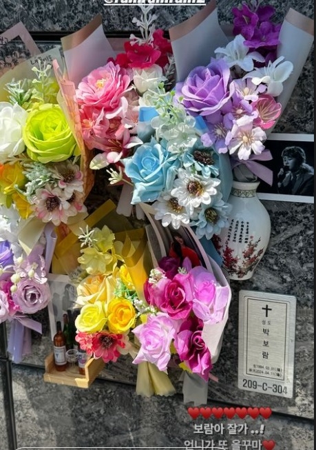 29일 자이언트 핑크는 “보람아 잘가..! 언니가 또 올꾸마”라는 글과 함께 한 장의 사진을 남겼다. 사진에는 故박보람의 추모 공간을 찾은 자이언트 핑크의 모습이 담겼다. 故박보람의 곁에는 아름다운 꽃이 가득했다.