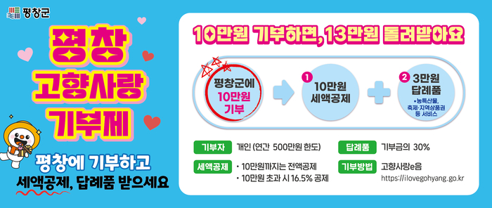 이로써 평창군 고향사랑기부제 답례품은 55개 업체, 126개 상품이 준비되었다.