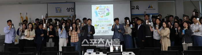 〔스포츠서울│수원=좌승훈기자〕경기도시장상권진흥원은 29일 양평 본원 대교육장에서 김경호 원장 직무대행을 포함한 임직원 총 80여명이 참여한 가운데 ‘1회용품 제로화 실천선언식’을 가졌다.
