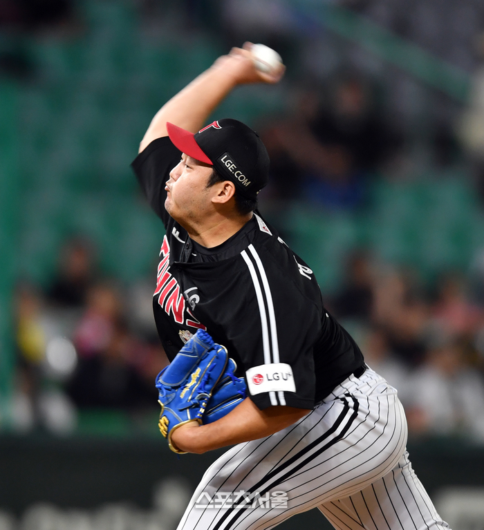LG 우완불펜 성동현이 30일 인천SSG랜더스필드에서 2024 프로야구 SSG랜더스와 LG트윈스 경기 8회말 무실점 피칭을 펼치고 있다. 2024.05.30.