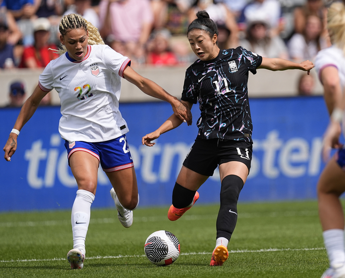 첫 판서 패한 한국은 오는 5일 오전 9시 미네소타주 세인트폴의 알리안츠 필드에서 미국과 2차전을 치른다. kkang@sportsseoul.com
