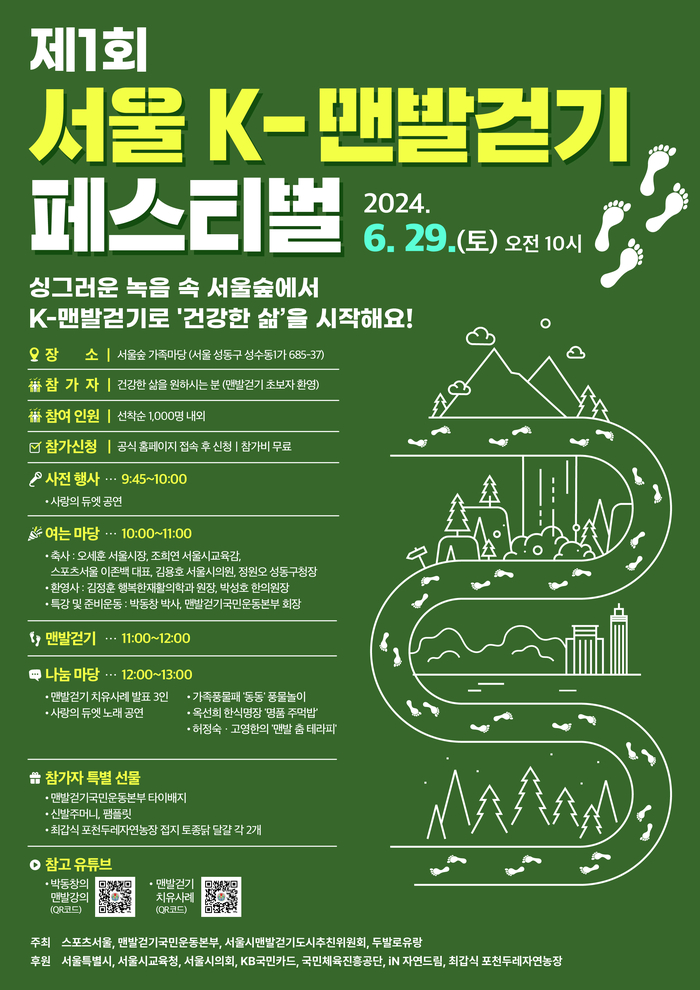 이런 가운데 국제도시 서울을 맨발걷기 도시로 세계에 알리기 위한 ‘제1회 서울 K-맨발걷기 페스티벌’이 오는 6월 29일 토요일 오전 10시~오후 1시 서울 성동구 서울숲 가족마당에서 개최된다.