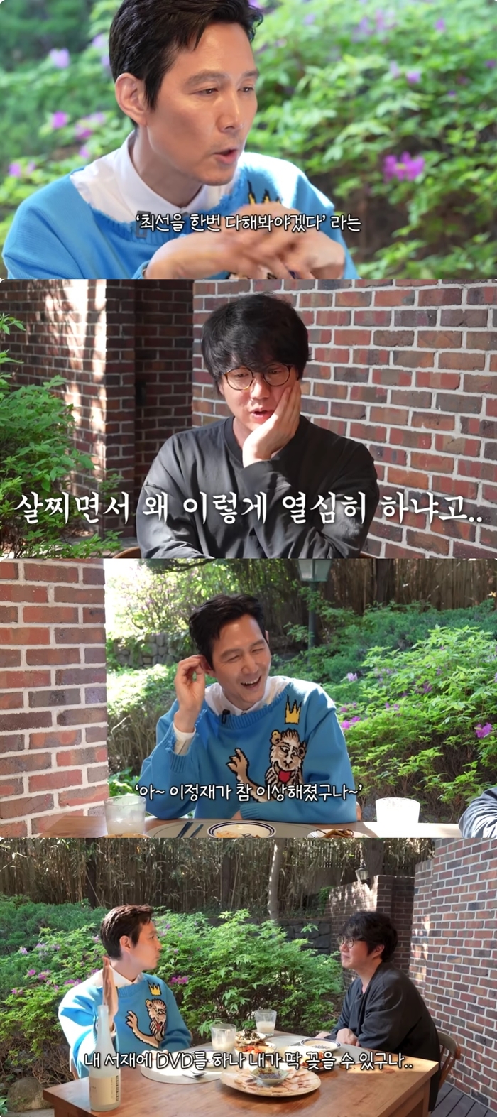 개인적인 이야기를 두런두런 하던 이정재는 좋아하는 가수이자 후배 성시경에 대한 잔소리도 조곤조곤 시전했다. 그는 촬영하러 오면서 성시경의 근황 기사를 봤다며 “시경씨가 살을 한 달에 7kg을 뺐다는 게 화제더라. 술이랑 좋아하는 사람이 이걸 끊고 뺐다는 거 아니냐”라며 칭찬했다.