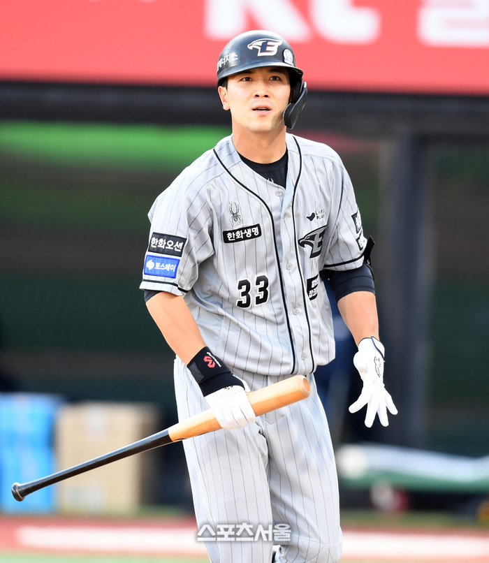 한화 1번타자 유로결이 4일 수원위즈파크에서 열린 2024 프로야구 KT위즈와 한화이글스의 경기 1회초 선두타자 삼진으로 물러나고 있다.