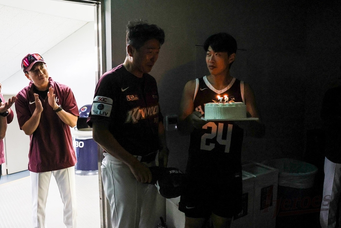 [스포츠서울 | 잠실=윤세호 기자] 키움 선수들이 생일을 맞은 홍원기 감독을 위해 깜짝 파티를 열었다.