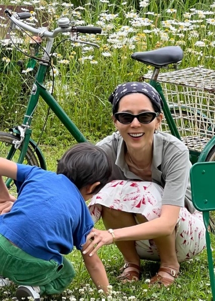 사진에는 아들 둘과 네잎클로버를 찾고 있는 김나영의 모습이 담겼다. 또다른 사진에는 공개 연인 마이큐와 아이들을 바라보는 모습도 담겼다.