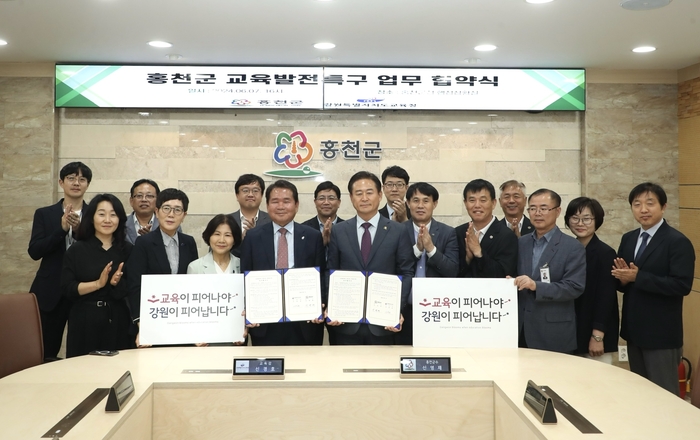 [스포츠서울ㅣ김기원기자] 강원특별자치도교육청(교육감 신경호)은 7일(금) 평창군(군수 심재국), 횡성군(군수 김명기), 홍천군(군수 신영재)과 각각 해당 군청에서 교육발전특구 시범지역 2차 지정 및 지역교육 발전을 위한 업무협약을 체결하였다.