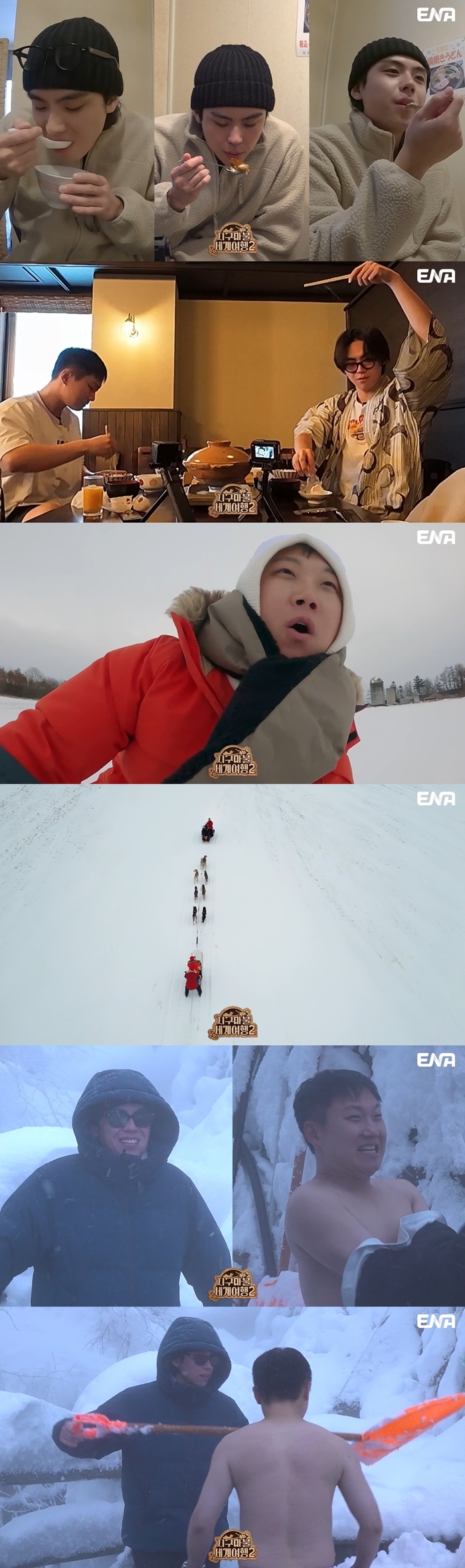 든든히 배를 채운 뒤 이들은 개썰매를 타러 간다. 개썰매는 일본에서 옛날부터 우체부들이 우편을 배달하기 위해 이용해온 전통적인 이동 수단 중 하나다. 엄청난 활동량을 자랑하는 베테랑 썰매견들은 눈밭을 달리고 싶어 빠니와 김도훈을 반갑게 맞았다.