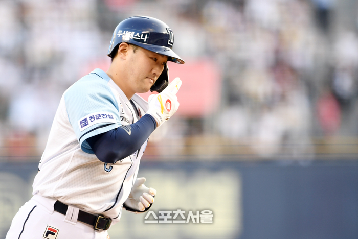 두산 베어스 양석환이 8일 잠실구장에서 열린 2024 KBO리그 KIA 타이거즈와 경기 5회말 무사 KIA 임기영을 상대로 솔로 홈런을 치고 베이스를 돌고 있다. 양석환의 시즌 16호 홈런. 2024. 6 .8.