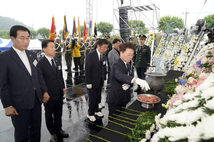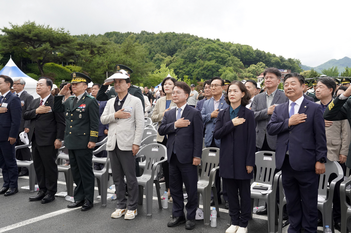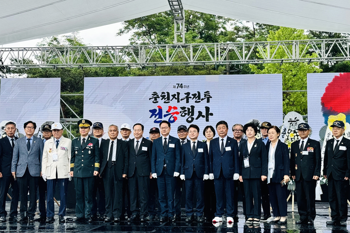 [스포츠서울ㅣ춘천=김기원기자] 육동한 춘천시장은 지난 8일 춘천 베어스 호텔 주차장에서에서 열린 ‘제74주년 춘천지구전투 전승 행사 故심일 소령 추모식’ 및 기념식에 참석했다.
