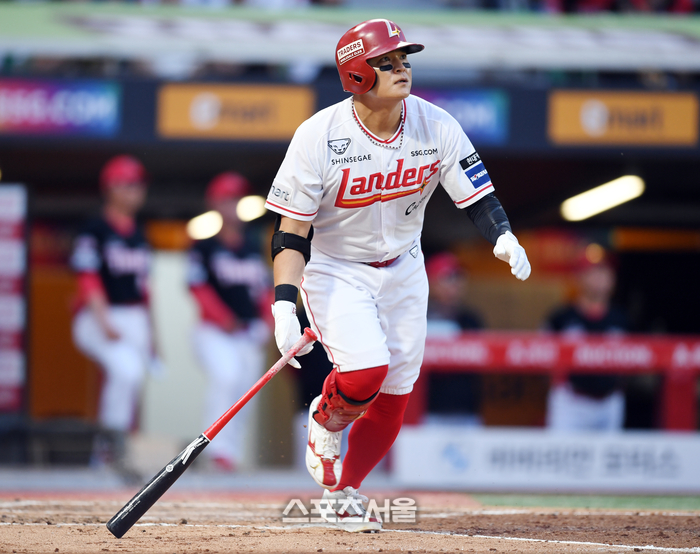 SSG 2번타자 추신수가 11일 인천SSG랜더스필드에서 열리는 2024 프로야구 SSG랜더스와 KIA타이거즈의 경기 3회말 무사 2루에서 우전안타로 출루하고 있다. 2024.06.11.