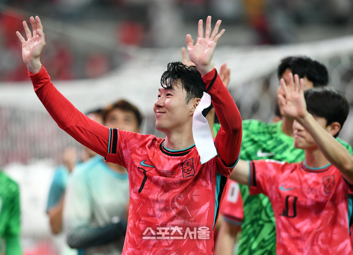한국 축구국가대표팀의 손흥민이 11일 서월월드컵경기장에서 열린 월드컵 아시아 지역 예선 중국과의 경기에서 중국에 1-0으로 승리한 뒤 팬들에게 인사를 하고 있다. 2024. 6. 11.