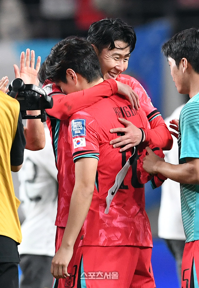 한국 축구국가대표팀의 손흥민(오른쪽)이 11일 서월월드컵경기장에서 열린 월드컵 아시아 지역 예선 중국과의 경기에서 중국에 1-0으로 승리한 뒤 결승골의 주인공 이강인과 포옹을 하고 있다. 2024. 6. 11.