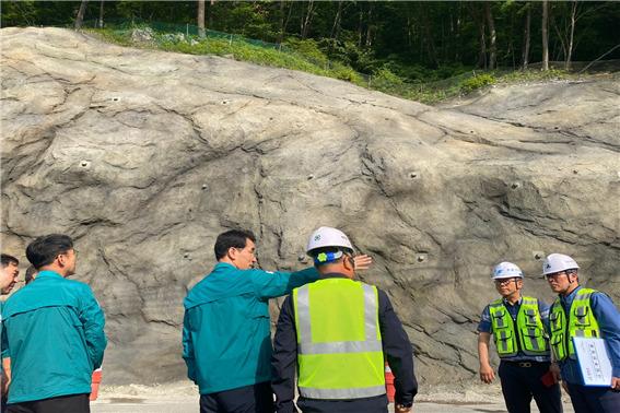 이날 평창군 수하지구 급경사지 공사현장에서 수해방지대책과 안전시설 설치현황 등을 살펴보고 우기대비 안전관리에 더욱 힘써달라는 당부와 함께 현장 직원들을 격려하였다.