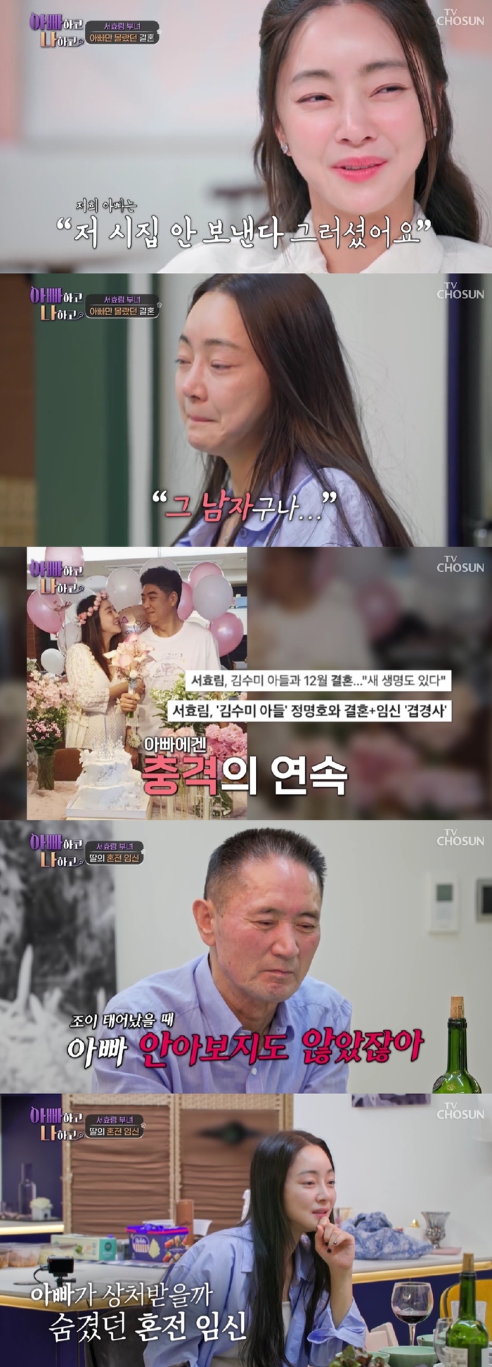 지난 2019년 12월 정씨와 결혼한 서효림은 이듬해 6월 엄마가 됐다. 서효림은 “연애 중에 갑작스럽게 아이가 생겨 결혼을 서둘렀다. 친정 부모님도 결혼 소식을 기사로 알게 되셨다. 엄마한테는 만난다고 얘기했는데 아빠는 모르셨다”라고 말했다.