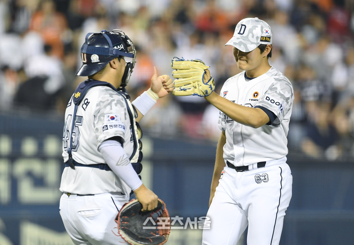 [스포츠서울 | 잠실=윤세호 기자] 새로운 시대 시작점이 찍혔다. 슈퍼 루키 김택연(19)이 마무리 투수 보직을 받은 첫날부터 세이브를 올렸다. 선발 투수 최원준도 자기 몫을 다했고 하위 타순에 배치된 강승호 전민재 박준영 조수행도 동반 활약을 펼쳤다.
