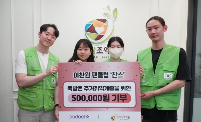 희망조약돌 이재원 사무총장은 “주거취약계층을 위한 소중한 기부에 진심으로 감사드린다. 희망조약돌도 가수 이찬원 팬클럽의 선한 영향력을 이어받아 쪽방촌 어르신들이 이번 여름을 잘 이겨내실 수 있도록 더욱 신경쓰겠다”고 약속했다.