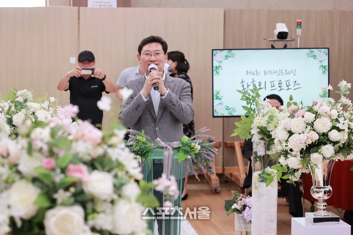 〔스포츠서울│용인=좌승훈기자〕이상일 용인특례시장은 15일 기흥구 신갈동 기흥노인복지관 강당에서 열린 리마인드 웨딩 ‘황혼의 프로포즈’ 에 참석해 “결혼의 참 의미를 알게 해준 선배님들의 아름다운 모습이 존경스럽다”며 “가정을 이루고 자녀를 기르며 겪어 온 많은 어려움을 함께 나눠 온 부부의 이야기를 글로 쓰면 장편소설 10권도 모자랄 것이라 생각한다”고 말했다.