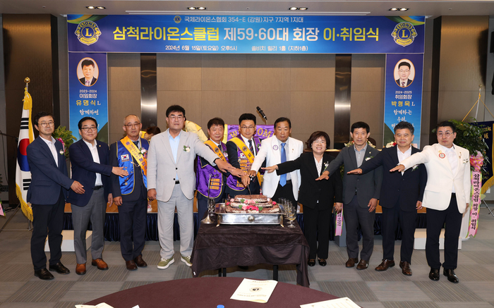 [스포츠서울ㅣ김기원기자] 국제라이온스협회 354-E(강원)지구 7지역 1지대 삼척라이온스클럽 회장 이취임식이 15일 삼척쏠비치 릴리1홀에서 열려 제59대 유명식 회장이 이임하고 제60대 박형욱 회장이 취임했다.