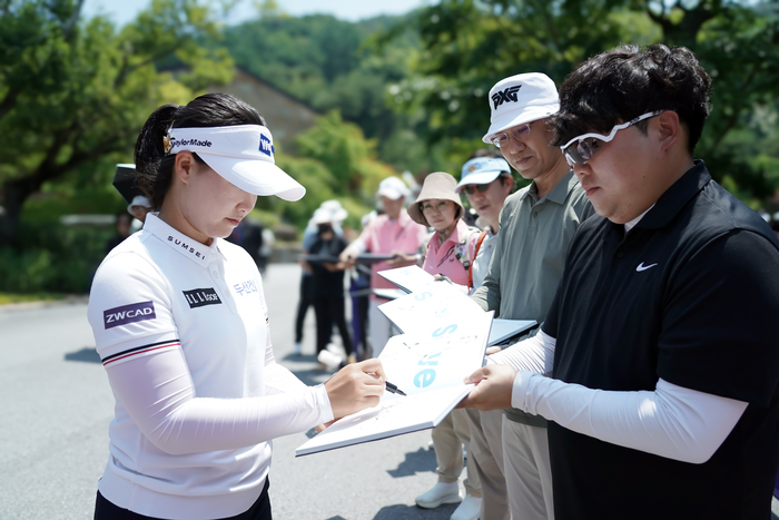 재미있는 점은 지난해와 다른 장면이 더러 보인다. 종이나 공, 모자, 우산 등에 사인받는 게 익숙한 풍경인데, 올해는 시즌 개막전이던 두산건설 위브 챔피언십때부터 화보집을 들고 선수를 찾아다니는 팬을 자주 목격한다. 두산건설이 새롭고 성숙한 팬 문화를 만들자는 취지로 제작한 포토북이 예상보다 크게 호응받고 있어서다.