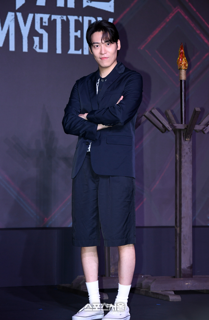가수 존박이 18일 서울 마포구 호텔 나루 서울 엠갤러리에서 진행된 넷플릭스 ‘미스터리 수사단’ 제작발표회에서 취재진을 향해 포즈를 취하고 있다.