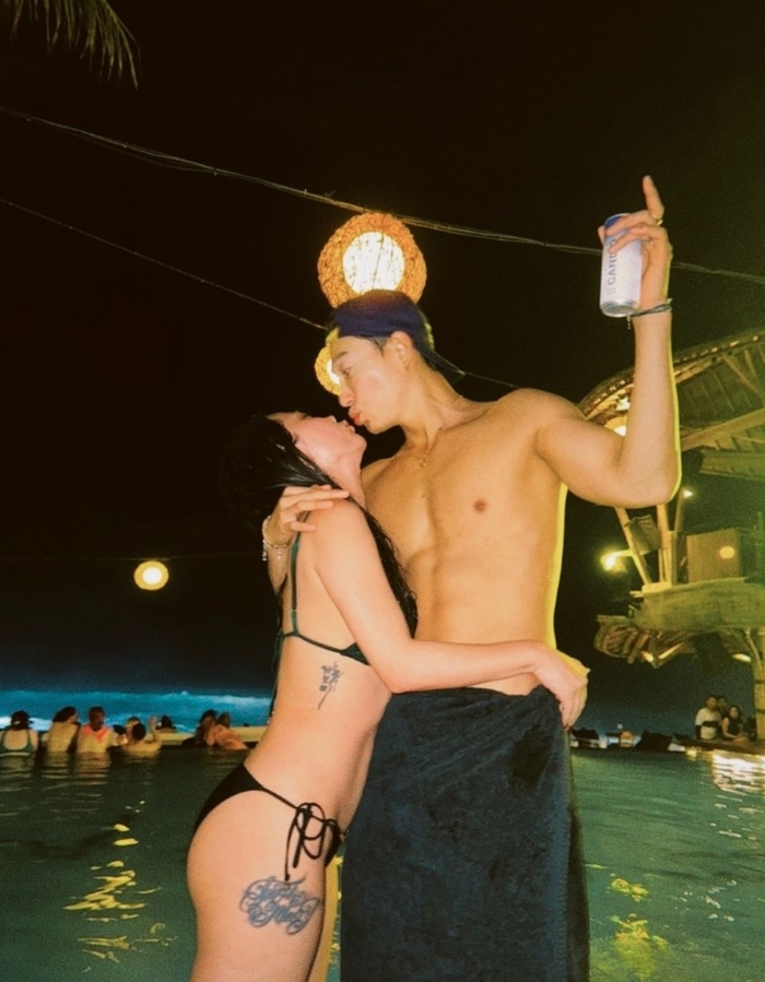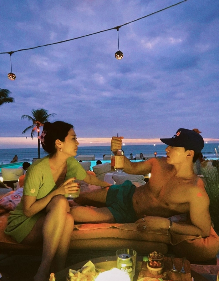 사진 속에서 두 사람은 연애시절 처럼 비치클럽에서 심야 수영을 즐기고, 오토바이를 함께 타는가 하면 야식을 즐기는 모습.
