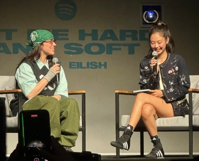 빌리 아일리시가 등장하자 제니는 환한 웃음을 지어보이며 서로를 껴안고 인사했다. 이날 제니는 유창한 영어 실력으로 빌리 아일리시와 여러 이야기를 나눴다.